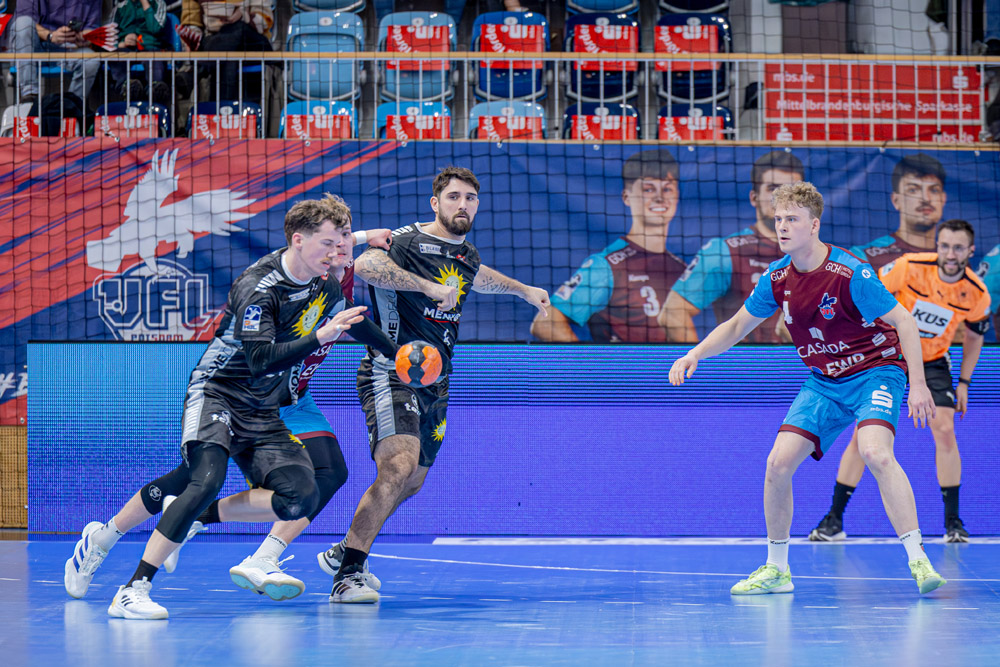 Eine ausgeglichene Partie sahen die Zuschauer in den ersten 30 Minuten. Ein erstes Statement der Gäste die Phase vom 4:4 (9. Minute) bis zum 4:8 (13.). Die Rothemden (diesmal wieder in schwarzen Trikots) kamen nach tollem Assist von Jó Gerrit Genz durch Alexander Schulze zum 4:5, ehe wieder Alexander Schulze im Tempogegenstoß traf und Niko Blaauw weiter aufstockte, gekrönt von einem Tim-Wieling-Treffer. Erst nach 25 Minuten gelang den Hausherren erstmals eine Führung. Das 11:10 für Potsdam konnte Tjorven Sturhahn jedoch postwendend ausgleichen. Henri Papst traf für Nettelstedt-Lübbecke zum 14:14 (29.), was den Pausenstand bedeutete.